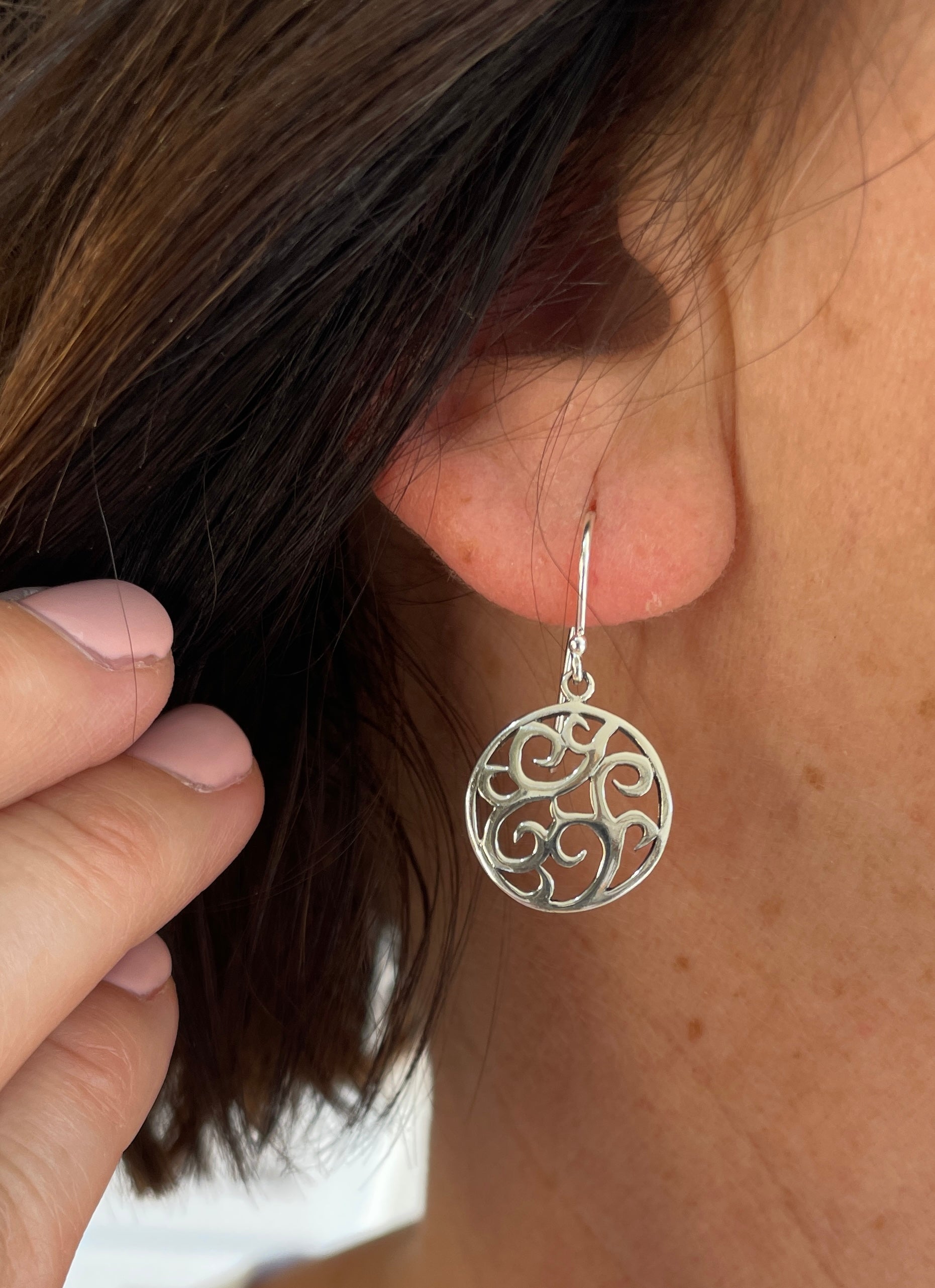 • Pretty Silver Filigree Drop Earrings with Butterfly back.