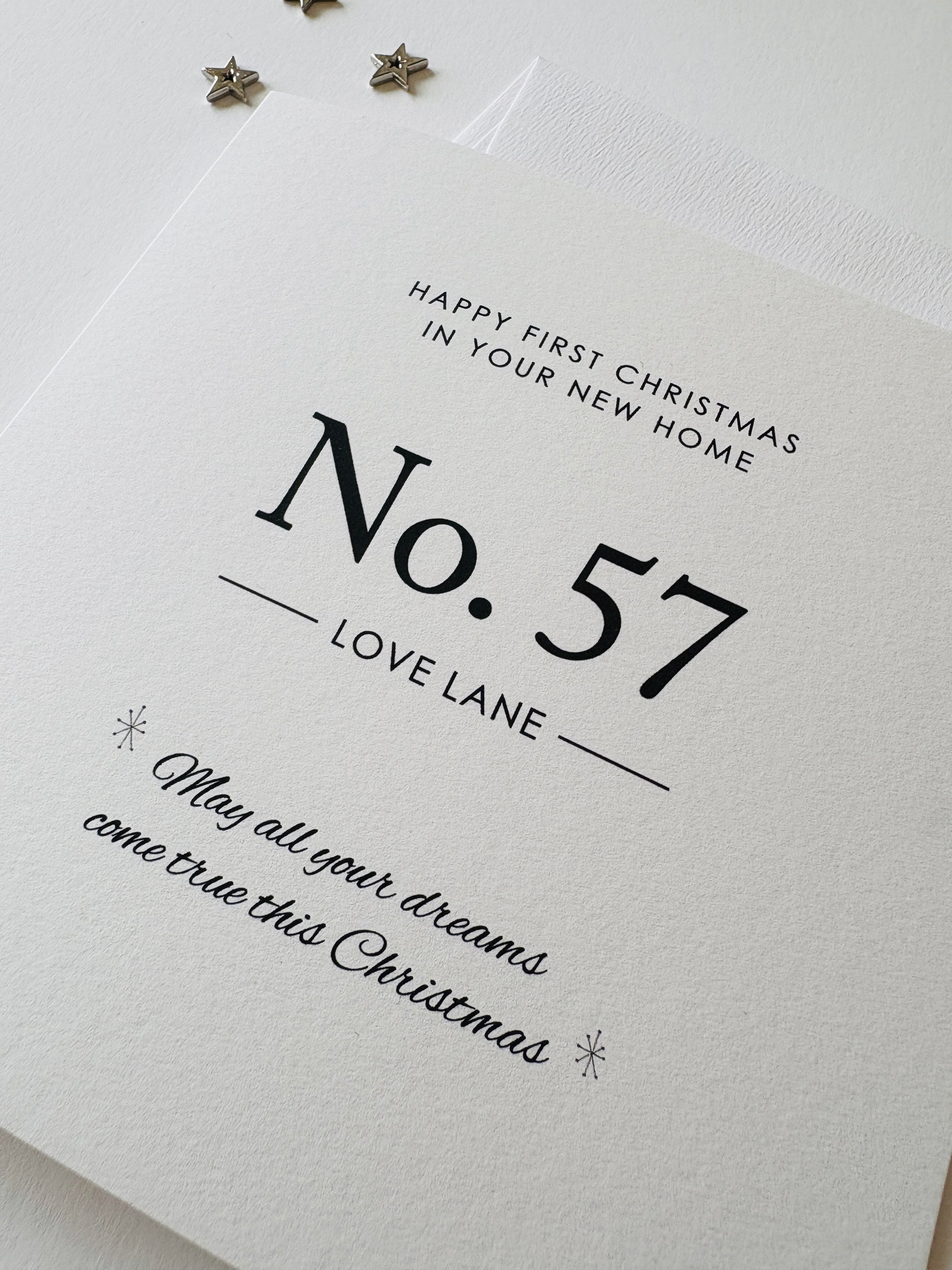 Personalised with the address, we can also add names to the front of the card if you wish at no extra cost.